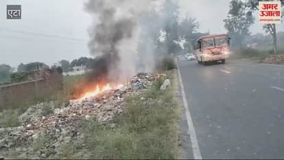 VIDEO : एटा के अवागढ़ में सुलग रहे कूड़े के ढेर, हवा हो रही दूषित