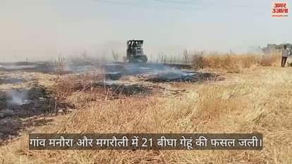 VIDEO : एटा में खेतों में लगी आग, 21 बीघा गेहूं की फसल जलकर राख, नुकसान देख किसान की पत्नी हुई बेहोश