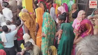 एटा के सकीट सहकारी समिति पर चार दिन बाद खाद वितरण होने की खबर मिलने पर किसान सुबह पांच बजे से बड़ी संख्या के पहुंच गए। भीड़ ज्यादा होने के कारण वितरण कर्ताओं को पुलिस का सहयोग लेना पड़ रहा है। खाद की कमी होने से क्षेत्र के किसान परेशान दिखाई दे रहे हैं।