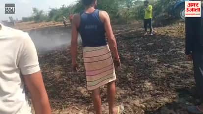 एटा के जलेसर-अवागढ़ रोड स्थित ग्राम चंदा बृजपुर में सोमवार को बिजली विभाग की लापरवाही किसान पर भारी पड़ गई। खेत के ऊपर से गुजर रही 33 हजार वोल्ट की हाईटेंशन लाइन में हुए शॉर्ट सर्किट से निकली चिंगारी से खड़ी गेहूं की फसल में भीषण आग लग गई। अग्निकांड में दो किसानों की करीब 10 बीघा फसल जलकर खाक हो गई। ग्रामीणों की सूचना पर तत्काल फायर ब्रिगेड की टीम मौके पर पहुंची। दमकल कर्मियों ने कड़ी मशक्कत के बाद आग पर काबू पाया। आग को आसपास के अन्य खेतों में फैलने से रोका।