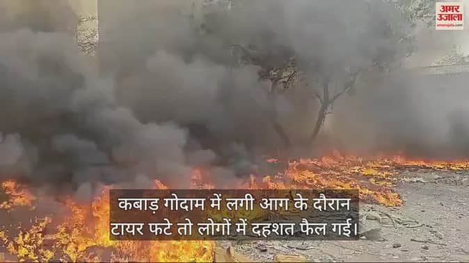VIDEO : कबाड़ गोदाम में लगी भीषण आग, धमाकों से दहशत; आधा घंटे तक मची रही अफरा-तफरी