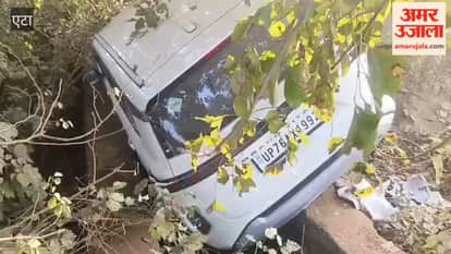 VIDEO: अनियंत्रित होकर नाले में गिरी कर, बाल-बाल बचा चालक
