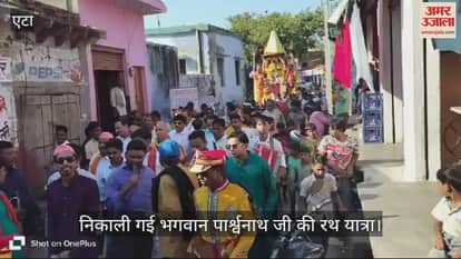 उत्तर प्रदेश के एटा में शनिवार को सकीट कस्बा में जैन समाज के प्रमुख दशलक्षण पर्युषण पर्व के समापन के बाद भगवान पार्श्वनाथ जी की रथ यात्रा बड़े हर्षोल्लास के साथ निकाली गई। रथ यात्रा नगर भ्रमण के दौरान भगवान पार्श्वनाथ जी का जगह-जगह आरती उतारकर स्वागत किया गया। भगवान महावीर के भक्तजन थिरकते नजर आए। रथ यात्रा में जैन समाज के साथ सभी वर्गों के लोगों द्वारा भाग लिया गया।