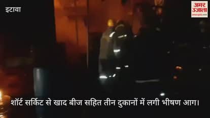 VIDEO : इटावा में शॉर्ट सर्किट से तीन दुकानों में लगी आग, 27 लाख का सामान जलकर राख, दमकल की दे गाड़ियों ने पाया काबू
