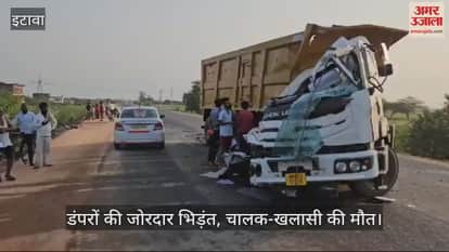 VIDEO : इटावा में दो डंपरों की आमने-सामने भिड़ंत, चालक और खलासी की मौत, शवों को पोस्टमार्टम के लिए भेजा
