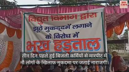 इटावा में बिजली विभाग पर मनमानी का आरोप लगाकर सोमवार को शुरू हुई भूख हड़ताल मंगलवार को भी जारी रही। बिजली घर में टेंट लगाकर राभरत नारेबाजी की गई। शुक्रवार देर शाम फ्रेंड्स काॅलोनी थाना क्षेत्र के विजय नगर मोहल्ले में बिजली विभाग की चेकिंग टीम के साथ मोहल्ले के लोगों की हाथापाई हो गई थी। इस पर बिजली विभाग के कर्मचारियों ने नौ लोगों के खिलाफ मारपीट, सरकारी काम में बाधा डालने, लूट और एसएसी-एसटी एक्ट, मीटर टेंपरिंग करने की धारा में मुकदमा दर्ज करा दिया।