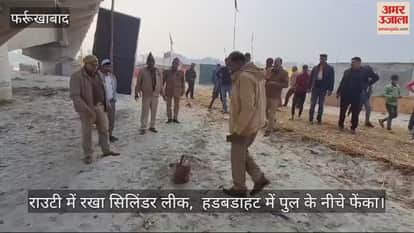 फर्रुखाबाद जिले के मेला रामनगरिया में किसी ने पुल के नीचे छोटा गैस सिलिंडर फेंक दिया। सिलिंडर से हो रहे गैस रिसाव से उठी बदबू से लोग चौकन्ने हुए। रास्ता बंद कराकर पुलिस को सूचना दी गई। सूचना पर फायर ब्रिगेड और पुलिस के लोग मौके पर पहुंचे। रास्ता बंद कर सिलिंडर से गैस का रिसाव बंद कराया। पुलिस मामले की जांच कर रही है।
