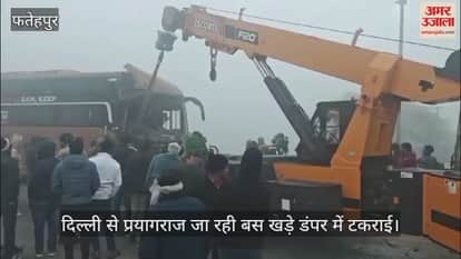 VIDEO : फतेहपुर में कोहरे का कहर, खड़े डंपर में टकराई बस, दिल्ली से जा रही थी प्रयागराज, 12 श्रद्धालु घायल