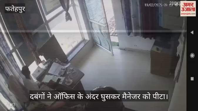 फतेहपुर जिले में दबंगों ने एक पेट्रोल पंप के मैनेजर को ऑफिस में घुसकर जमकर पीटा है। घटना सीसीटीवी कैमरे में कैद हुई है, जिसका वीडियो वायरल हो रहा है। इसमें दिखाई दे रहा है कि कुछ युवक ऑफिस में घुसकर मैनेजर से मारपीट करने लगते हैं। साथ ही, मारते हुए घसीट कर ऑफि से बाहर ले जाते हैं।