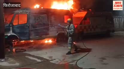 VIDEO: फिरोजाबाद के जिला अस्पताल परिसर में कबाड़ एंबुलेंस में लगी आग, मची अफरातफरी