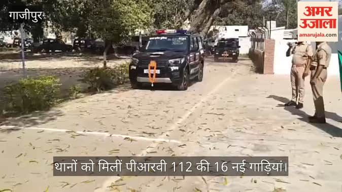 VIDEO: गाजीपुर में पीआरवी 112 की 16 नई गाड़ियां थानों को मिलीं, एसपी ने दिखाई हरी झंडी