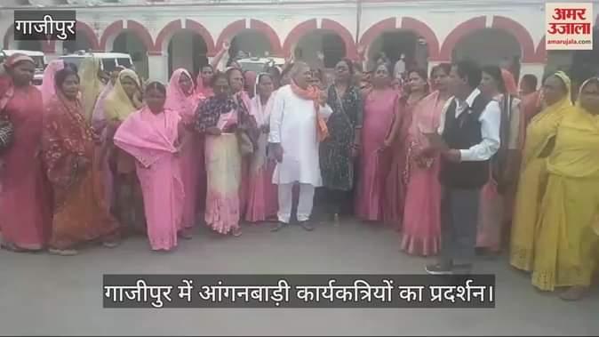 VIDEO : गाजीपुर कलेक्ट्रेट परिसर में आंगनबाड़ी कार्यकत्रियों का प्रदर्शन, भेजा मुख्यमंत्री को संबोधित ज्ञापन