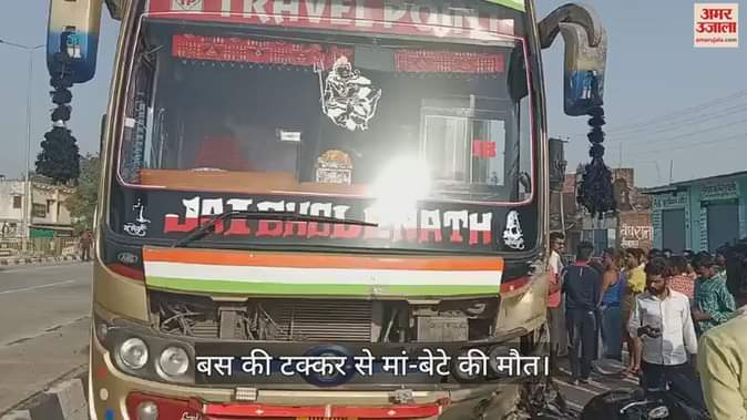 VIDEO : बस ने बाइक सवार को रौंदा, मां-बेटे की हुई मौत, पति घायल; परिजनों में मचा कोहराम