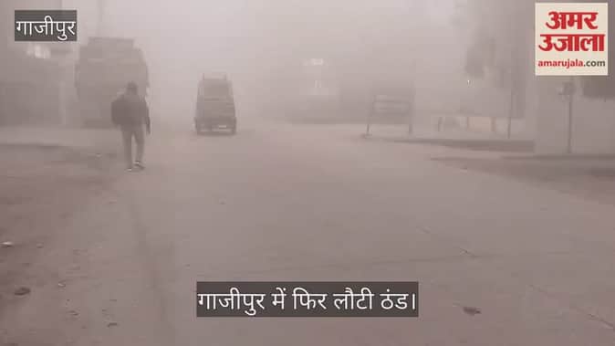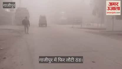 Cold weather returned to Ghazipur with visibility reduced to 10 meters and the area shrouded in fog