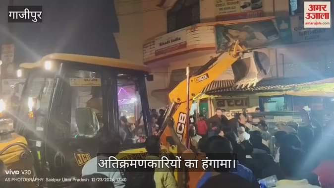 VIDEO : In Ghazipur, encroachers had a heated argument with the municipal corporation and police personnel causing a ruckus on the spot