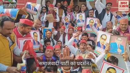VIDEO : Samajwadi Party workers staged a strong protest in Ghazipur took out a march and protested shouted slogans