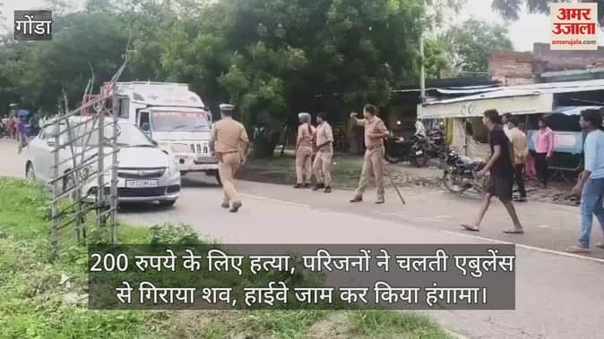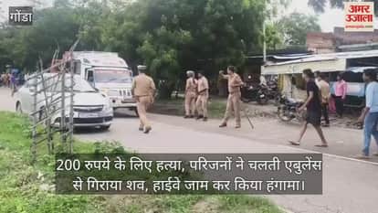 यूपी के गोंडा में सोमवार की शाम बालपुर बाजार में घरवालों ने हृदयलाल का शव चलती एबुलेंस से नीचे गिरा दिया। इसके बाद लखनऊ-गोंडा हाईवे जाम करके हंगामा शुरू कर दिया। पुलिस ने देखा तो शव को रोड से हटाने में जुट गई, ताकि यातायात सुचारू किया जा सके। इस दौरान हंगामा कर रहे लोग पुलिस के खिलाफ नारेबाजी करते रहे। उन्होंने आरोपी के खिलाफ कड़ी कार्रवाई की मांग की।