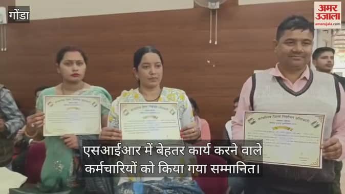 गोंडा में जिला पंचायत सभागार में सोमवार को एसआईआर में बेहतर कार्य करने वाले कर्मचारियों को सम्मानित किया गया। इस मौके पर डीएम प्रियंका निरंजन ने कहा कि एसआईआर को लेकर प्रशासन पूरी तरह से गंभीर है। लोगों को जागरूक किया जा रहा है। जिला स्तरीय अधिकारियों को निगरानी के लिए लगाया गया है। वहीं, करनैलगंज में एसडीएम नेहा मिश्रा ने अभियान में सक्रिय सहयोग के लिए एनसीपी व स्काउट गाइड के छात्रों की मदद लेने का निर्णय लिया है।