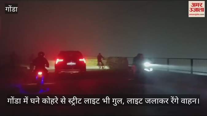 VIDEO : गोंडा में घने कोहरे से स्ट्रीट लाइट भी गुल, लाइट जलाकर रेंगे वाहन
