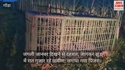 गोंडा में जंगली जानवर दिखने से दहशत, जागकर झुंड में रात गुजार रहे ग्रामीण; लगाया गया पिंजरा