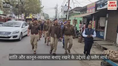 गोंडा में शांति और कानून-व्यवस्था बनाए रखने के उद्देश्य से शुक्रवार को पुलिस अधीक्षक विनीत जायसवाल के नेतृत्व में कोतवाली नगर क्षेत्र में भारी पुलिस बल और आरएएफ (रैपिड एक्शन फोर्स) के साथ फ्लैग मार्च किया गया।