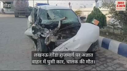 VIDEO : लखनऊ-गोंडा राजमार्ग पर अज्ञात वाहन में घुसी कार, चालक की मौत