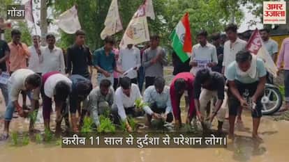 Video: गोंडा: जलभराव से परेशान छात्रों ने सड़क पर रोपा धान, गड्ढे होने से तालाब में बदल गई सड़क