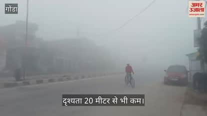 VIDEO: गोंडा में सुबह रहा घना कोहरा, दृश्यता 20 मीटर से भी कम