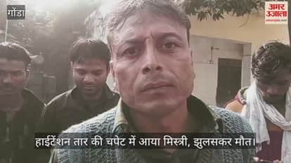 VIDEO: सटरिंग लगाते समय हाईटेंशन तार की चपेट में आया मिस्त्री, झुलसकर मौत