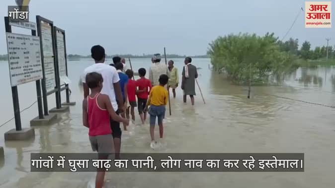 गोंडा जिले के नवाबगंज के माझा क्षेत्र के आधा दर्जन गावों में बाढ़ का पानी आबादी की ओर बढ़ रहा है। मजरों में पानी घुसने के साथ ही रास्ते पानी से घिर गए हैं जिसके चलते लोगों के आवागमन के साथ ही अन्य जरूरी काम बाधित हो गए हैं। साकीपुर गांव के मजरे अट्ठाईसा में पूर्वी तरफ से पानी घुस गया है। रास्ते जलमग्न होने से लोग पानी में घुसकर आ जा रहे हैं। वहीं पशुओं के चारे के लिए नदी पार कर लोगों को जाना पड़ रहा है।