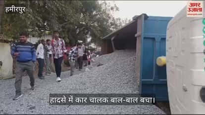हमीरपुर जिले में कानपुर-सागर हाईवे पर तेज रफ्तार डंपर ने पहले स्कॉर्पियो को टक्कर मार दी। इसके बाद कार में टक्कर मारकर उसी में पलट गया, जिससे कार चकनाचूर हो गई। कार सवार दो मिनट पहले ही कार से उतरकर दुकान पर चाय पीने लगा था। हादसा रानी लक्ष्मी बाई तिराहे पर हुआ है।
