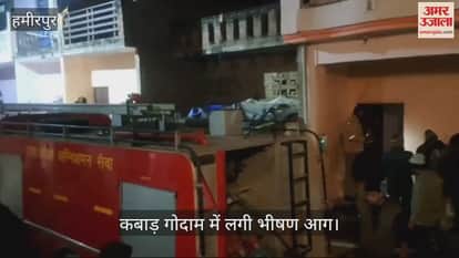 VIDEO : हमीरपुर में कबाड़ गोदाम में लगी भीषण आग, दमकल ने कड़ी मशक्कत से पाया काबू, नुकसान का किया जा रहा आकलन