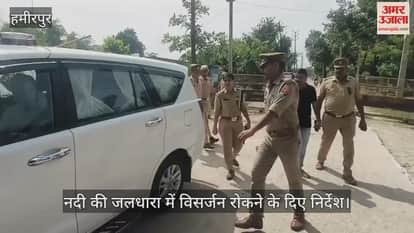 हमीरपुर में मूर्ति विसर्जन के मद्देनजर एसपी डॉ. दीक्षा शर्मा ने संकरी पीपल मोड़ सहित विसर्जन स्थलों का निरीक्षण कर सुरक्षा व्यवस्था का जायजा लिया। उन्होंने नदी की जलधारा में मूर्ति विसर्जन न हो। इसके लिए पुलिसकर्मियों को कड़े निर्देश दिए।