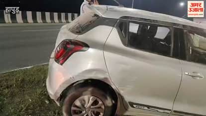 हापुड़ में हाईवे पर अनियंत्रित होकर पलटी कार, दो घायल