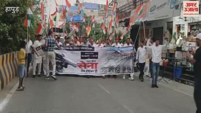 हापुड़ में सैनिकों के सम्मान में शुक्रवार को नगर में तिरंगा यात्रा निकाली गई। आंधी और बरसात के बाद भी सैकड़ों लोग हाथों में तिरंगे लेकर शामिल हुए। यात्रा के दौरान पाकिस्तान मुर्दाबाद के नारे लगे। ऑपरेशन सिंदूर को लेकर भारतीय सेना के शौर्य को समर्पित यह तिरंगा यात्रा निकाली गई।