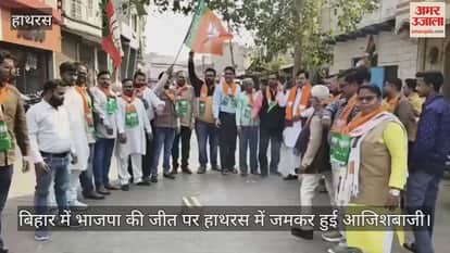 बिहार में भाजपा की जीत पर हाथरस में जमकर हुई आजिशबाजी