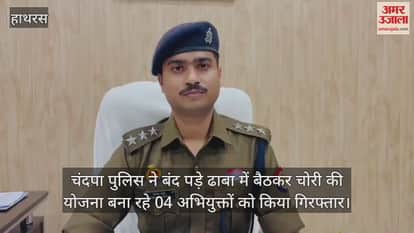 हाथरस की थाना चंदपा पुलिस द्वारा बंद पडे़ ढाबा में बैठकर चोरी की योजना बना रहे 04 अभियुक्तों को गिरफ्तार किया है। कब्जे से 01 तमंचा 315 बोर,01 तमंचा 12 बोर, 02 जिन्दा कारतूस (315 बोर व 12 बोर), एक सम्बल,02 पिलास, ताले की चाबियों का गुच्छा (10 चाबी) व वाहन की चाबियों का गुच्छा (11 चाभी) बरामद हुआ है।