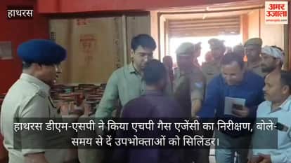 हाथरस डीएम-एसपी ने किया एचपी गैस एजेंसी का निरीक्षण, बोले- समय से दें उपभोक्ताओं को सिलिंडर