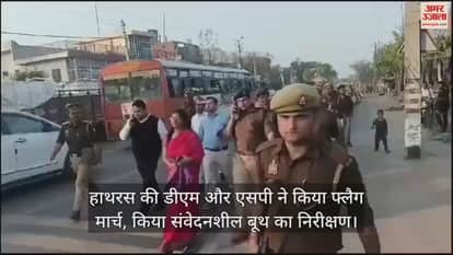 VIDEO : हाथरस की डीएम और एसपी ने किया फ्लैग मार्च, किया संवेदनशील बूथ का निरीक्षण