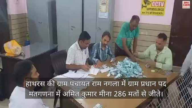 VIDEO : हाथरस की ग्राम पंचायत राम नगला में ग्राम प्रधान पद मतगणना में अमित कुमार मीना 286 मतों से जीते