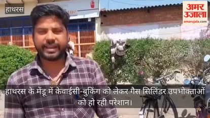 हाथरस के मेंडू में केवाईसी-बुकिंग को लेकर गैस सिलिंडर उपभोक्ताओं को हो रही परेशान