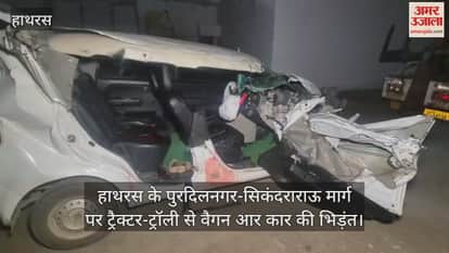 VIDEO : हाथरस के पुरदिलनगर-सिकंदराराऊ मार्ग पर ट्रैक्टर-ट्रॉली से वैगन आर कार की भिड़ंत