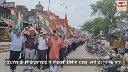हाथरस के सिकंदराराऊ में निकली तिरंगा यात्रा, लगे देशभक्ति नारे