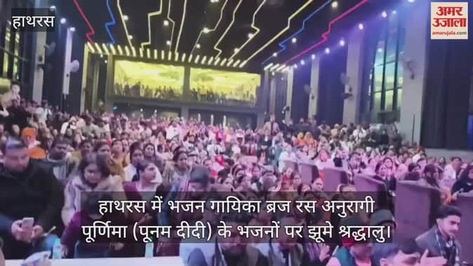 Hindi News ›   Video ›   Uttar Pradesh ›   Hathras News ›   हाथरस में भजन गायिका ब्रज रस अनुरागी पूर्णिमा (पूनम दीदी) के भजनों पर झूमे श्रद्धालु