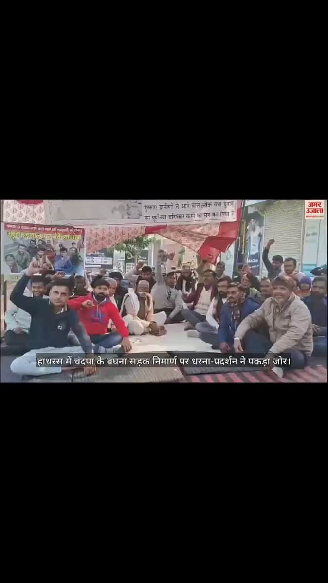 VIDEO : हाथरस में चंदपा के बघना सड़क निमार्ण पर धरना-प्रदर्शन ने पकड़ा जोर