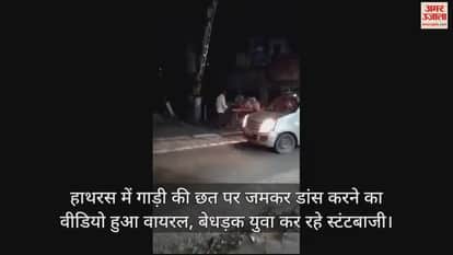 VIDEO : हाथरस में गाड़ी की छत पर जमकर डांस करने का वीडियो हुआ वायरल, बेधड़क युवा कर रहे स्टंटबाजी