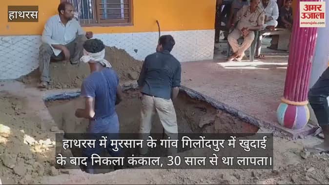 VIDEO : हाथरस में मुरसान के गांव गिलोंदपुर में खुदाई के बाद निकला कंकाल, 30 साल से था लापता