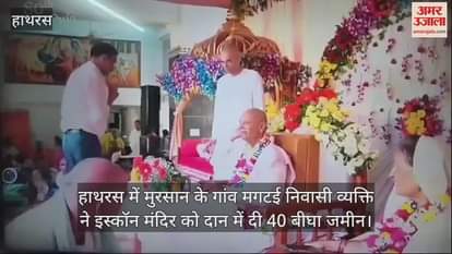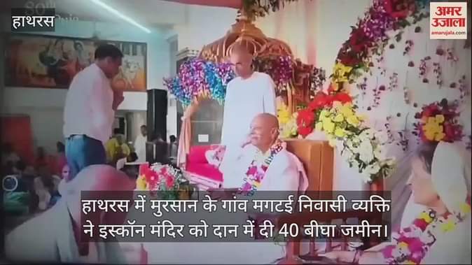 VIDEO : हाथरस में मुरसान के गांव मगटई निवासी व्यक्ति ने इस्कॉन मंदिर को दान में दी 40 बीघा जमीन
