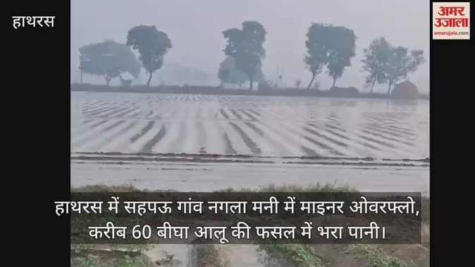 VIDEO : हाथरस में सहपऊ गांव नगला मनी में माइनर ओवरफ्लो, करीब 60 बीघा आलू की फसल में भरा पानी