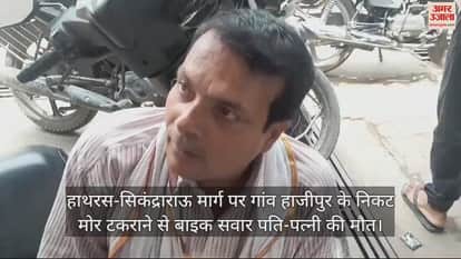 VIDEO : हाथरस-सिकंद्राराऊ मार्ग पर गांव हाजीपुर के निकट मोर टकराने से बाइक सवार पति-पत्नी की मौत